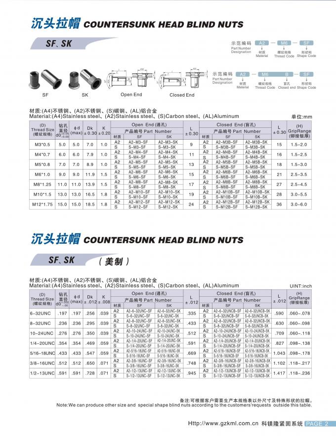 美制沉頭滾花鉚螺母 滾花沉頭拉帽 主打